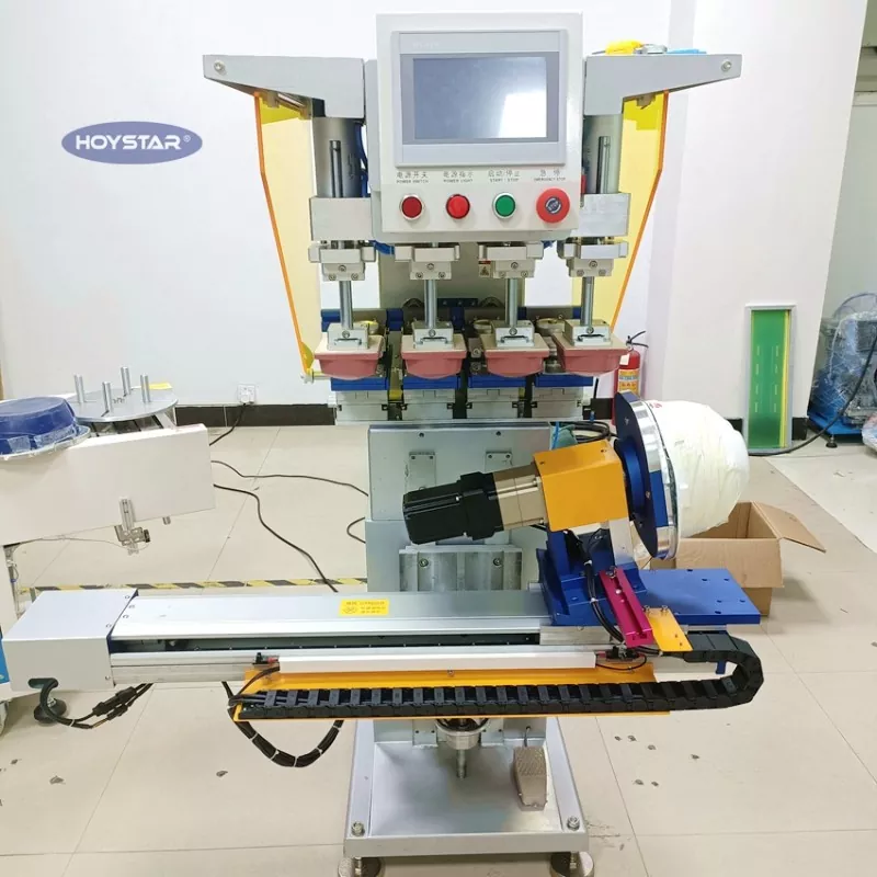 Çində istehsalçı və təchizatçılardan biri olan Dongguan Hoystar Machinery Co., Ltd.-dən dəbilqə üçün 4 rəngli tampon çap maşını satın alın. Dəbilqə üçün bu HOYSTAR 4 Rəngli Tampon Çap Maşını, işləməsi asan PLC sensor ekran idarəetmə paneli ilə təchiz edilmişdir. Bu maşın avtomatik fırlanan çap üçün servo motor nəzarətinə malikdir, dəbilqələrin 1 tərəfində, 2 tərəfində və ya 4 tərəfində çap etmək üçün seçimlər təklif edir. İş masası sola/sağa sürülür, fırlanan mələk, məhsulun hündürlüyü tənzimlənə bilər. Hər çap başlığı müstəqil olaraq tənzimlənə bilər və ayrıca quraşdırıla bilər.