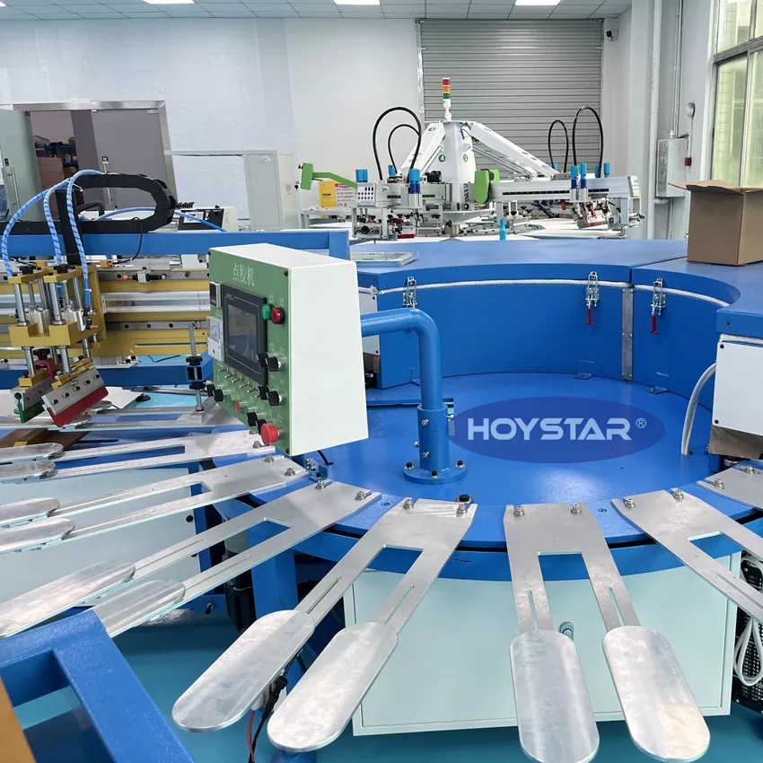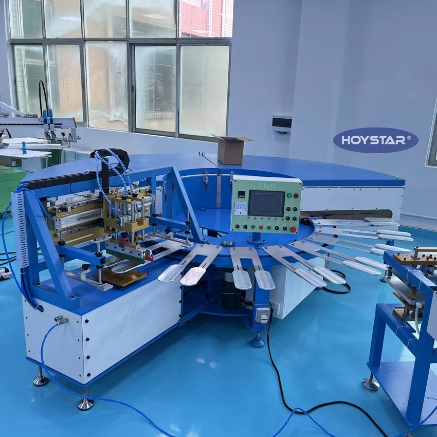 HOYSTAR Çində etibarlı istehsalçı və təchizatçıdır; Bu HOYSTAR Yüksək Sürətli Sürüşməyə Qarşı Corablar Ekran Çap Maşını tekstil toxuculuq sənayesindəki tətbiqlər üçün nəzərdə tutulmuşdur. 800-1000pairs/saat sürəti ilə sürüşməyən corablar, uşaq corabları, böyüklər üçün corablar, futbol corabları və s. çap üçün uyğundur. Dönər iş masası ilə təchiz olunmuş corabların yüklənməsi və boşaldılması çox rahatdır. PLC sensor ekran nəzarəti, işləmək çox asandır. Qurutma sistemi ilə təchiz edilmiş maşın silisiumu və mürəkkəbi yaxşı quruda bilər.