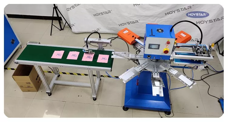 Peşəkar istehsalçı və təchizatçı olaraq HOYSTAR Avtomatik 1 Rəngli Salfet Ekran Çap Maşını. salfetlər üzərində tam avtomatik çap üçün xüsusi hazırlanmışdır. Onun sadələşdirilmiş çap prosesi aşağıdakı kimi baş verir: salfetləri maşına əl ilə yükləyin—ilk rəngin avtomatik çapı—avtomatik qurutma—avtomatik boşaltma—və məhsulun avtomatik yığılması.