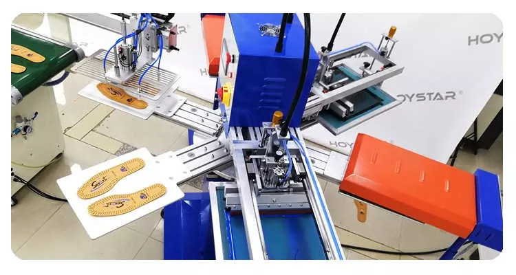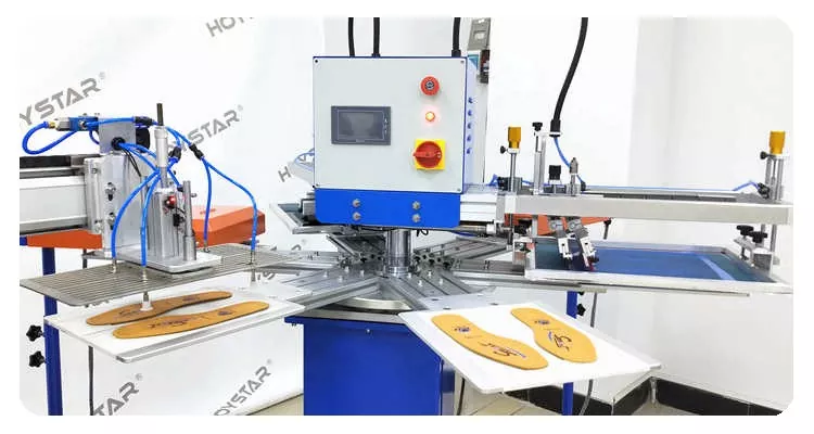 Qaynar Teqlər: Ayaqqabı altlığı üçün avtomatik 2 rəngli ekran çap maşını