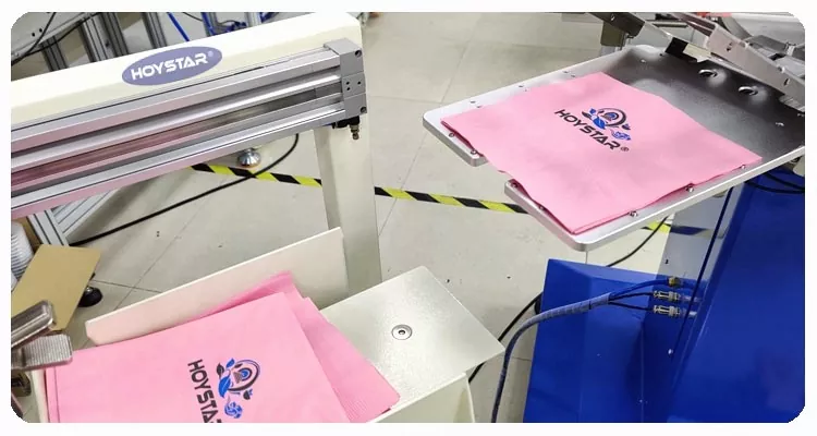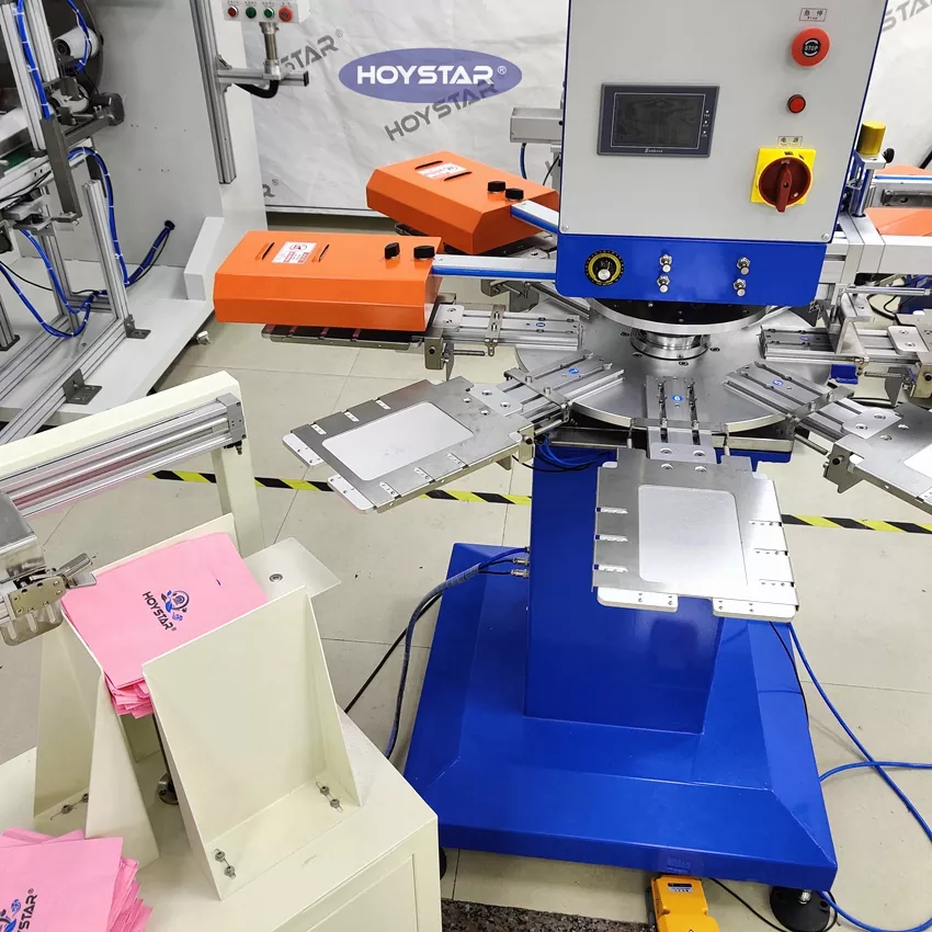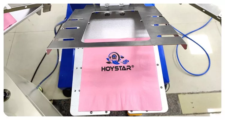 HOYSTAR Çində etibarlı istehsalçı və təchizatçıdır; Bu HOYSTAR Avtomatik 2 Rəngli Salfet Ekran Çap Maşını xüsusi olaraq salfetlərə tam avtomatik çap üçün nəzərdə tutulmuşdur. Onun sadələşdirilmiş çap prosesi aşağıdakı kimi baş verir: salfetləri maşına əl ilə yükləyin—birinci rəngin avtomatik çapı—avtomatik qurutma—ikinci rəngin avtomatik çapı—avtomatik qurutma—avtomatik boşalma—və məhsulun avtomatik yığılması.